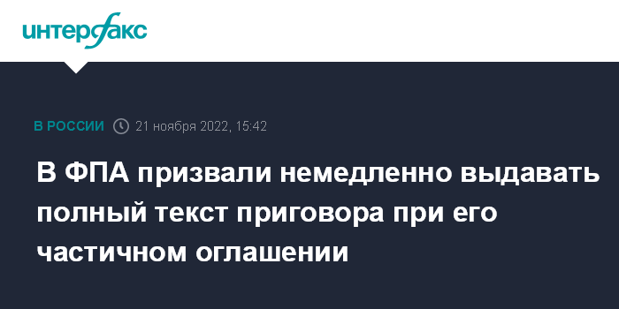 В ФПА призвали немедленно выдавать полный текст приговора при его частичном оглашении