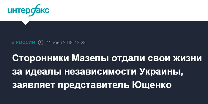 Сторонники Мазепы отдали свои жизни за идеалы независимости Украины, заявляет представитель Ющенко
