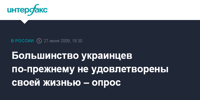 Киев. 27 июня. ИНТЕРФАКС-УКРАИНА - Большинство украинцев не довольны своей жизнью, показали результаты исследования общественного мнения населения страны.