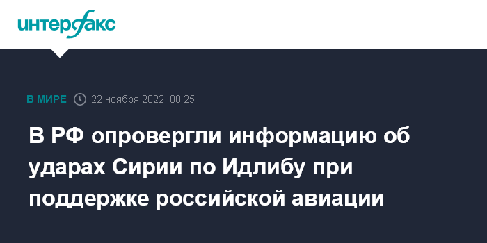 В РФ опровергли информацию об ударах Сирии по Идлибу при поддержке российской авиации