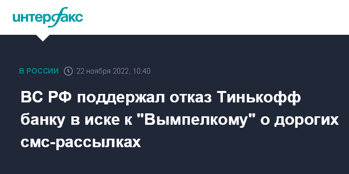 ВС РФ поддержал отказ Тинькофф банку в иске к "Вымпелкому" о дорогих смс-рассылках