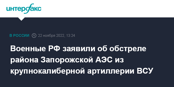 Москва. 22 ноября. INTERFAX.RU - Российские военные сообщили, что украинские силы обстреляли из артиллерии район Запорожской АЭС, радиационная обстановка на станции - в норме.