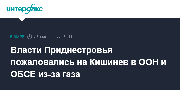 Москва. 22 ноября. INTERFAX.RU - Руководство непризнанного Приднестровья направило жалобы в ООН и ОБСЕ на незаконный отбор газа Кишиневом, сообщил МИД ПМР.