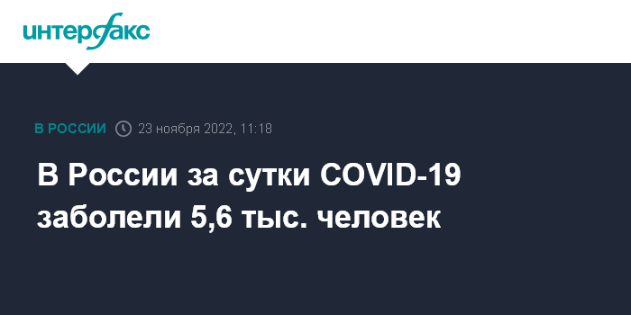 Москва. 23 ноября. INTERFAX.RU - Суточный прирост новых заболевших коронавирусом в РФ составил более 5,6 тысячи случаев, скончались 54 пациента с COVID-19, следует из данных оперативного штаба, обнародованных в среду.