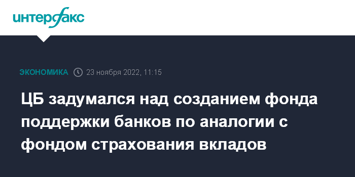 Москва. 23 ноября. INTERFAX.RU - ЦБ РФ думает над созданием автономного фонда поддержки банковского сектора за счет отчислений самих банков по аналогии с фондом страхования вкладов.