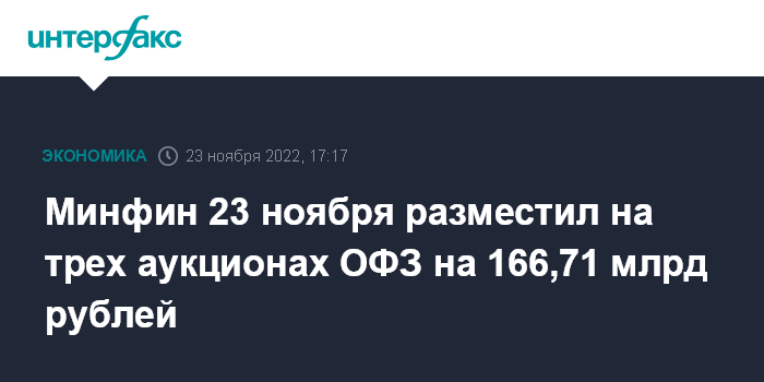 Минфин 23 ноября разместил на трех аукционах ОФЗ на 166,71 млрд рублей
