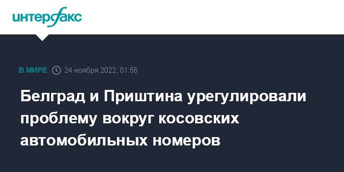 Москва. 24 ноября. INTERFAX.RU - Переговоры по спору об автомобильных номерах между Белградом и Приштиной завершились успешно, сообщил глава дипломатии Евросоюза Жозеп Боррель.