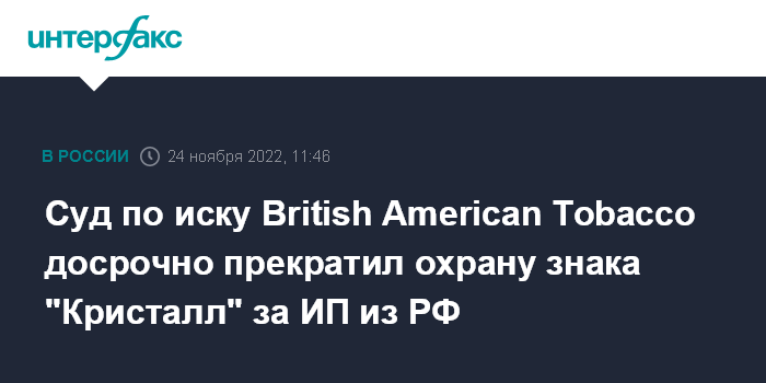 Суд по иску British American Tobacco досрочно прекратил охрану знака "Кристалл" за ИП из РФ
