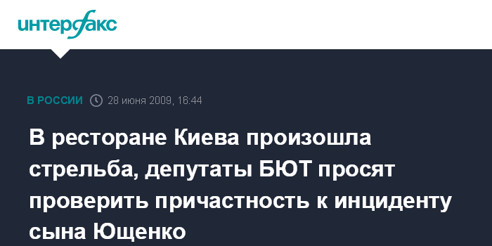 В ресторане Киева произошла стрельба, депутаты БЮТ просят проверить причастность к инциденту сына Ющенко