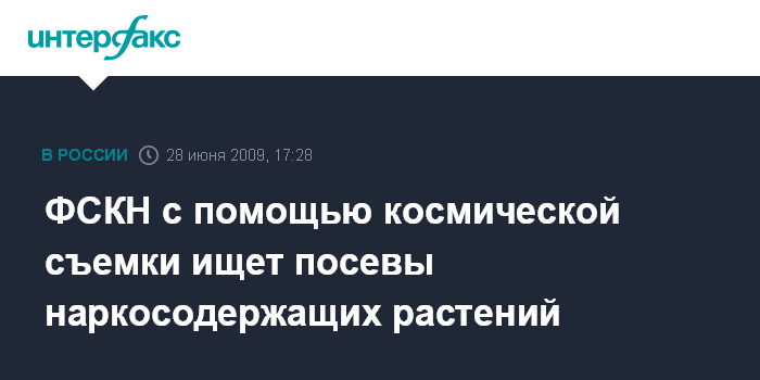 Москва. 28 июня. INTERFAX.RU - В 2009 году завершаются испытания системы космической съемки территории России с целью выявления посевов наркосодержащей растительности, сообщает пресс-служба Роскосмоса.