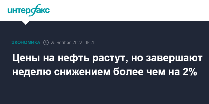 Москва. 25 ноября. INTERFAX.RU - Цены на нефть поднимаются в пятницу, но завершают неделю снижением более чем на 2% на фоне усиливающихся опасений трейдеров в отношении перспектив китайского спроса.