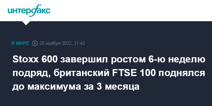 Stoxx 600 завершил ростом 6-ю неделю подряд, британский FTSE 100 поднялся до максимума за 3 месяца