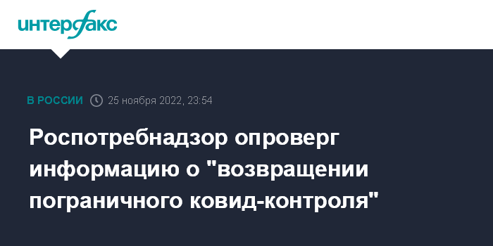 "В соцсетях активно распространяются сообщения о возвращении "пограничного ковид-контроля как на пике пандемии". Роспотребнадзор подчеркивает: эта информация не соответствует действительности", - говорится в сообщении, опубликованном в официальном телеграм-канале ведомства.