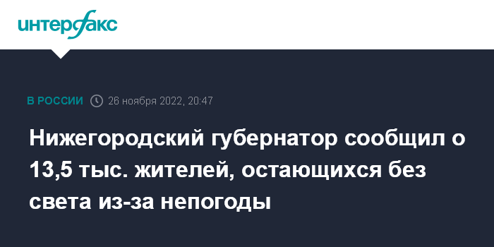 Нижегородский губернатор сообщил о 13,5 тыс. жителей, остающихся без света из-за непогоды