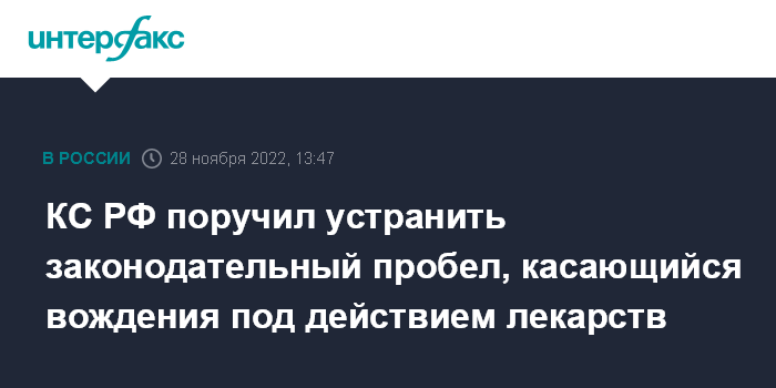 До этого момента вождение под действием лекарств, не содержащих этилового спирта, наркотических и психотропных веществ, не может караться по статье 12.8 и части 3 статьи 12.27 КоАП РФ, постановил КС.
