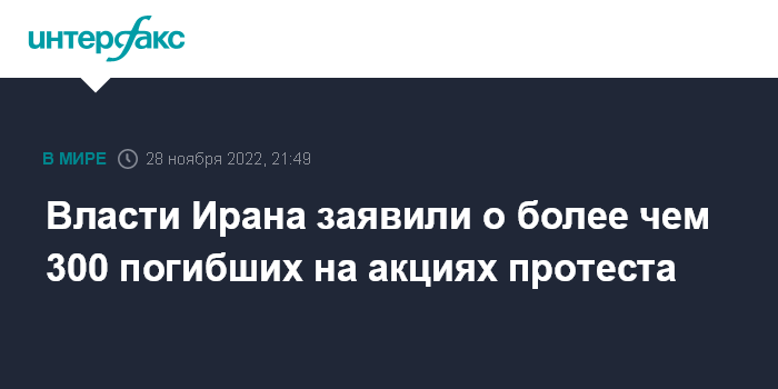 По данным одного из командиров Корпуса стражей Исламской революции (КСИР) Амира Али Гаджизаде, в ходе протестов были убиты более 300 человек, в том числе сотрудники сил безопасности. Он также заявил, что многие жертвы – рядовые иранцы, не принимавшие участия в протестах.