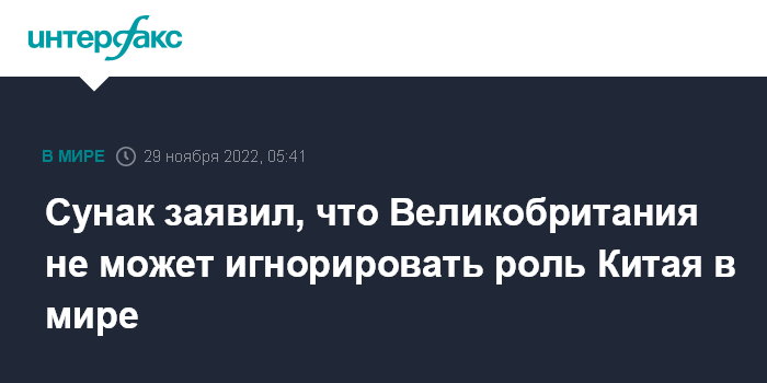 В июле во время предвыборной гонки консерваторов за место преемника бывшего премьер-министра Бориса Джонсона Сунак заявлял, что Китай представляет "самую большую угрозу" для безопасности и процветания Великобритании и всего мира.