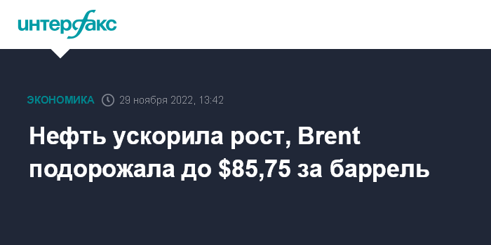 Нефть ускорила рост, Brent подорожала до $85,75 за баррель