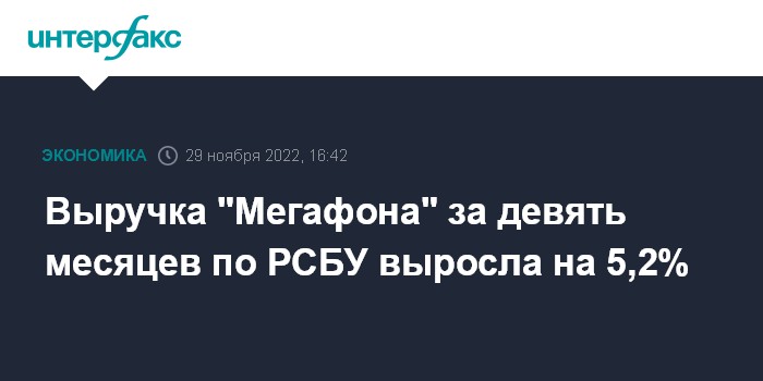 Выручка "Мегафона" за девять месяцев по РСБУ выросла на 5,2%