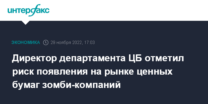 Директор департамента ЦБ отметил риск появления на рынке ценных бумаг зомби-компаний
