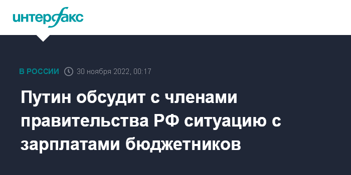 Путин обсудит с членами правительства РФ ситуацию с зарплатами бюджетников