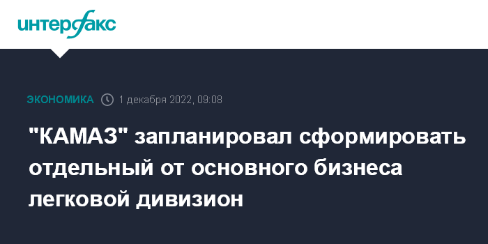 "У "КАМАЗа" есть намерение сформировать легковой дивизион. Но, условно говоря, вряд ли это будет консолидация (с основным бизнесом ПАО - ИФ). Мы формируем новый вид бизнеса", - сказал Когогин журналистам в кулуарах форума "Российский промышленник".