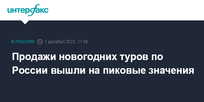 "Продажи туров по России на период новогодних праздников в этом году на 20-30% превосходят объемы прошлого года и уже превысили показатели доковидного 2019 года, спрос вырос практически по всем направлениям. Причинами такого всплеска туроператоры называют снятие ковидных ограничений, существенное подорожание выездного туризма, сложности с логистикой и визами на популярных прежде зарубежных направлениях", - говорится в сообщении.