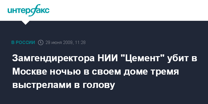 Замгендиректора НИИ "Цемент" убит в Москве ночью в своем доме тремя выстрелами в голову