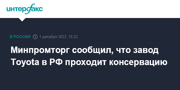 Минпромторг в конце сентября сообщал, что Toyota полностью прекращает производство автомобилей на своем заводе в Петербурге, обязуясь сохранять послепродажное обслуживание машин Toyota и Lexus, а также поддержку дилерской сети.