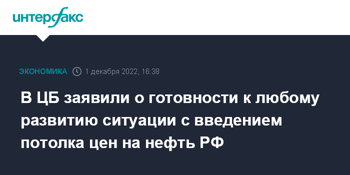 В ЦБ заявили о готовности к любому развитию ситуации с введением потолка цен на нефть РФ