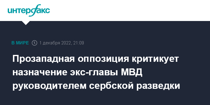 Прозападная оппозиция критикует назначение экс-главы МВД руководителем сербской разведки