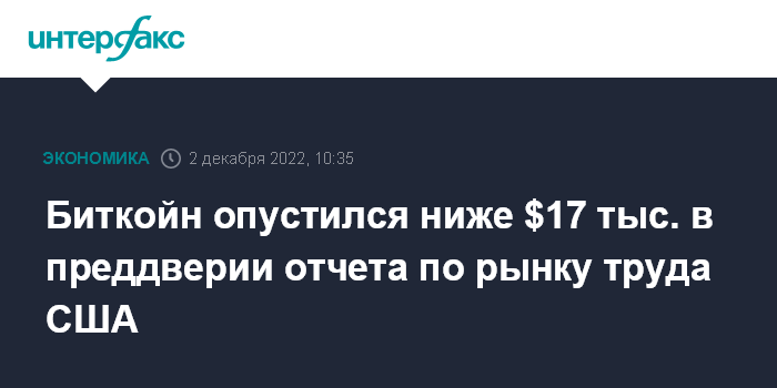 Биткойн опустился ниже $17 тыс. в преддверии отчета по рынку труда США