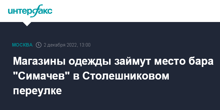 Магазины одежды займут место бара "Симачев" в Столешниковом переулке