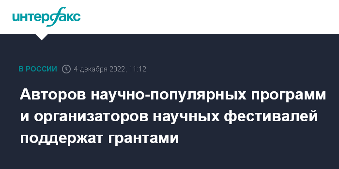 Авторов научно-популярных программ и организаторов научных фестивалей поддержат грантами