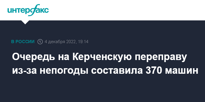 Москва. 4 декабря. INTERFAX.RU - Неблагоприятные погодные условия не позволили осуществлять паромные перевозки пассажиров, автомобилей и железнодорожных вагонов через Керченский пролив на выходных, сообщает оперативный штаб Краснодарского края.