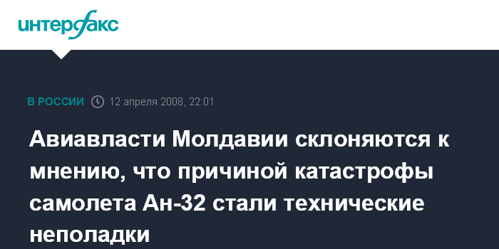 Авиавласти Молдавии склоняются к мнению, что причиной катастрофы самолета Ан-32 стали технические неполадки