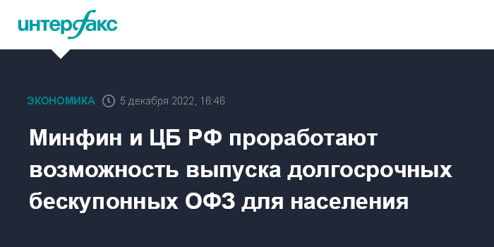 Минфин и ЦБ РФ проработают возможность выпуска долгосрочных бескупонных ОФЗ для населения