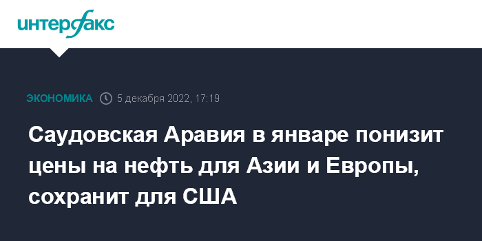 Москва. 5 декабря. INTERFAX.RU - Саудовская Аравия в январе понизит цены на большинство сортов нефти для азиатских покупателей, сообщила госкомпания Saudi Aramco.