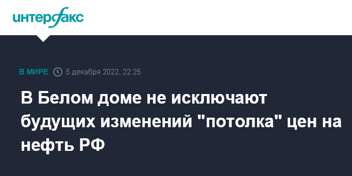 Москва. 5 декабря. INTERFAX.RU - США считают, что установление "потолка" цен на российскую нефть приведет к фиксированной скидке на нее, и не исключают корректировки предела цен в случае необходимости, заявил в понедельник представитель Совета нацбезопасности США Джон Кирби.