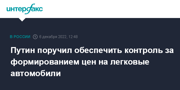Москва. 6 декабря. INTERFAX.RU - Президент РФ Владимир Путин поручил правительству обеспечить постоянный контроль за формированием цен на легковые автомобили, не допустить их необоснованного повышения.