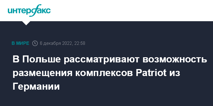 Ранее польская сторона выступила с предложением, чтобы комплексы Patriot, которые Германия намеревалась направить в Польшу, были бы поставлены на Украину, однако Берлин от такой идеи отказался.