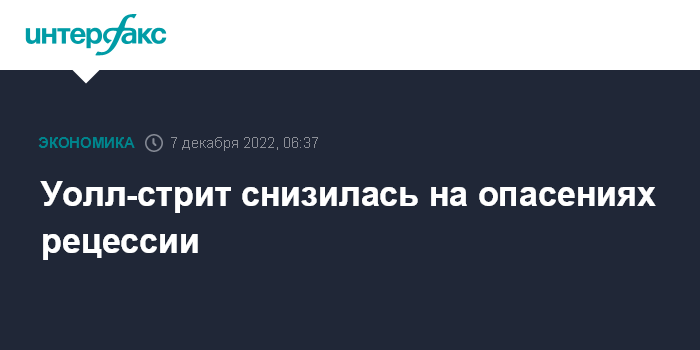 Москва. 7 декабря. INTERFAX.RU - Американские фондовые индексы завершили снижением торги во вторник на растущих опасениях рецессии в экономике США, причем для индекса S&P 500 падение зафиксировано четвертый раз подряд.