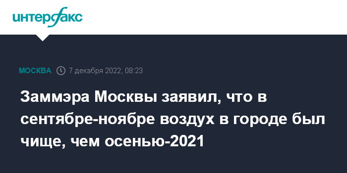 Заммэра Москвы заявил, что в сентябре-ноябре воздух в городе был чище, чем осенью-2021