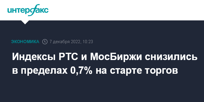 Индексы РТС и МосБиржи снизились в пределах 0,7% на старте торгов