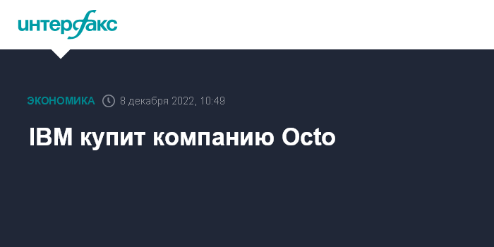 Москва. 8 декабря. INTERFAX.RU - Американская International Business Machines договорилась о приобретении компании Octo, которая специализируется на оказании цифровых услуг правительству, у инвестфирмы Arlington Capital Partners.