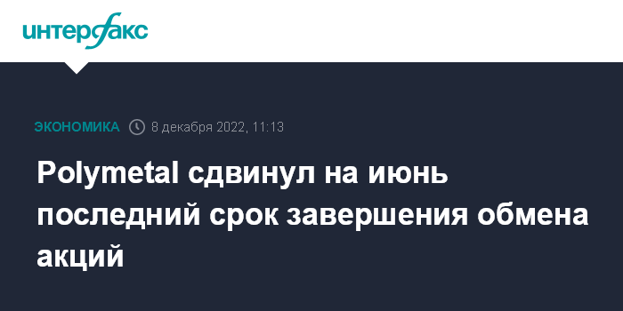 Москва. 8 декабря. INTERFAX.RU - Polymetal вновь пересмотрел период обмена акций для нерезидентов, чьи бумаги учитываются в НРД, – их перевода из электронной в документарную форму.