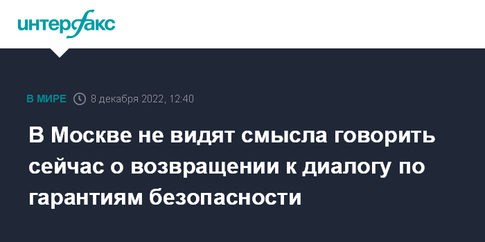В Москве не видят смысла говорить сейчас о возвращении к диалогу по гарантиям безопасности