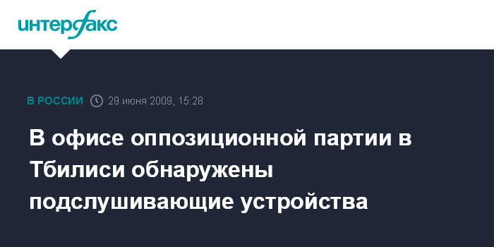 Тбилиси. 29 июня. INTERFAX.RU - В офисе оппозиционной партии "Путь Грузии", лидером которой является экс-министр иностранных дел Саломе Зурабишвили, обнаружены два подслушивающих устройства.