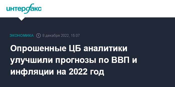 По сравнению с октябрьским опросом улучшился прогноз как по снижению ВВП (в октябре прогнозировали падение на 3,5% в 2022 году), так и по инфляции (в октябре ожидания по инфляции на 2022 год составляли 12,5%).