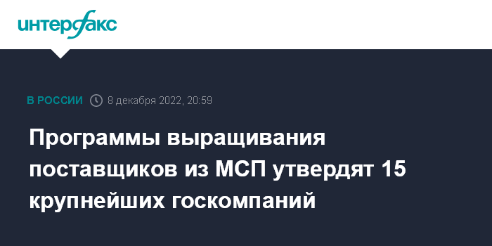 Эти госкомпании подтвердили готовность утвердить программы выращивания поставщиков из числа субъектов МСП, следует из данных корпорации. Причем две из них - "ДОМ.РФ" и РЖД - сделают это до конца 2022 года.